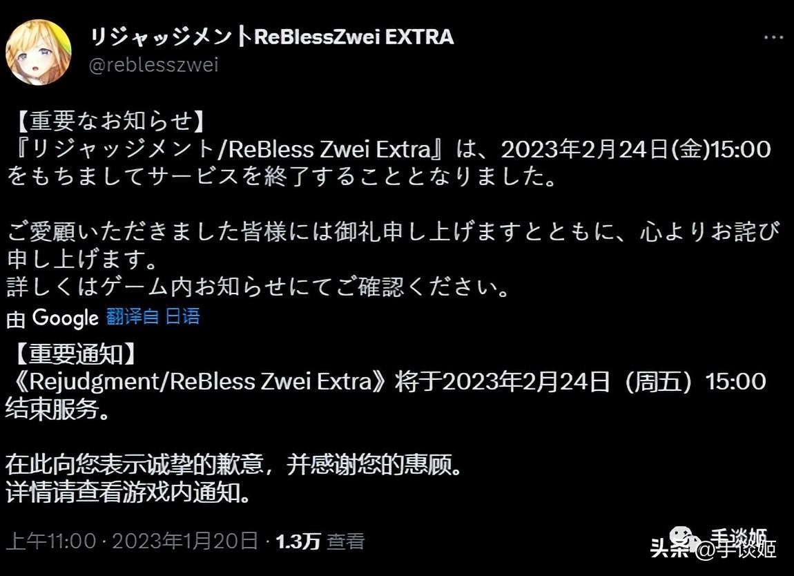 所以当手谈姬无意间刷到一款名为 《ReBless Zwei Extra》 的游戏的 关服通告 时,姬的内心毫无波澜,甚至还在想昨天姬的B站视频做得那么好看怎么没人一键三连。