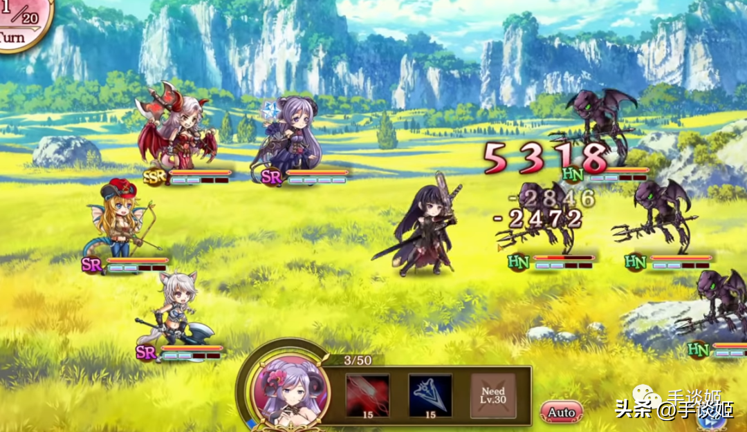 另一方面,从游戏性角度来看,别说2023年了,放2019年也是完全不算给力的。从油管的录播可以看出,本作是那种典型的回合制RPG,抽一堆角色,凑成6人小分队,战斗,你拍一我拍一,能量满了,开大招欣赏一下动画,刷到材料,升级角色,氪金抽更多同样的角色,突破等级上限,氪金抽各种武器,增加队伍强队,去竞技场爆杀没有氪金的玩家。