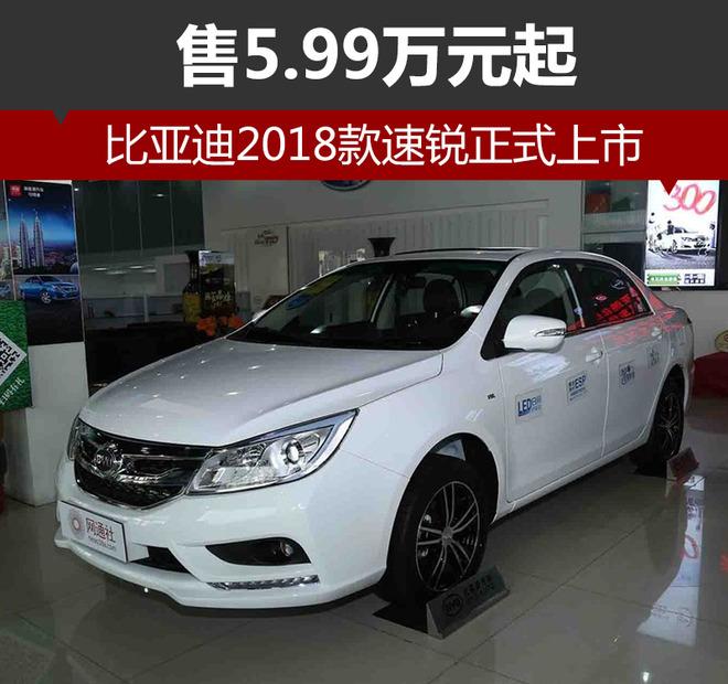 速锐是比亚迪旗下紧凑型轿车,现款车型于2015年3月18日上市,根据产品规划,企业将推出新款车型。网通社从比亚迪经销商了解到,2018款速锐正式上市,新车共推出三款车型,售价区间为5.99-6.99万元。2018款速锐前脸采用“双飞翼”进气格栅,中间横向饰条采用镀铬处理,更具力量感。动力方面,新车搭载1.5升自然吸气发动机。