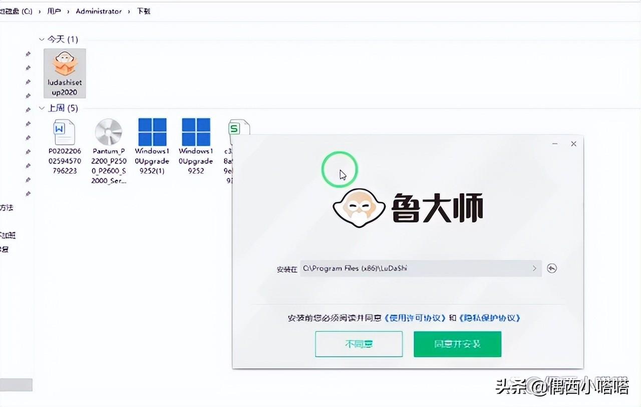 1、在鲁大师官网下载鲁大师软件,下载保存到本地,点击右键,选择管理员身份运行,如下图: