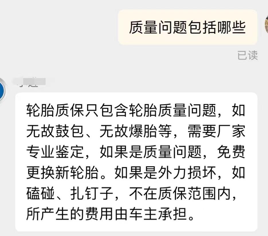 某轮胎电商关于轮胎质量问题范围的解答/记者截图