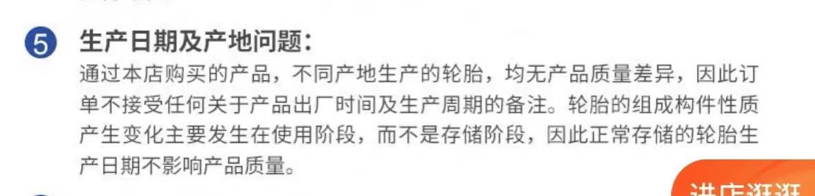 某轮胎品牌线上旗舰店就生产日期及产地问题的提示/记者截图