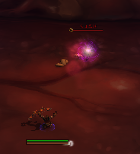 先攻击下BOSS,然后选择目标为自己,等BOSS施放【末日黑洞】技能(为一个黑色的球),往四周的墙边缓慢飞行,这时你需要把它触碰回来,球会越变越大,来回碰撞后,约10次了,再击杀BOSS!