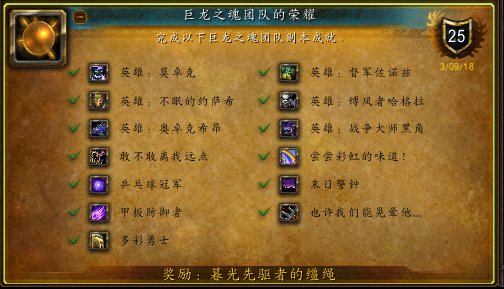 【多彩勇士】: 从每一位守护巨龙的平台上开始战斗,并击败死亡之翼(普通或英雄难度)。