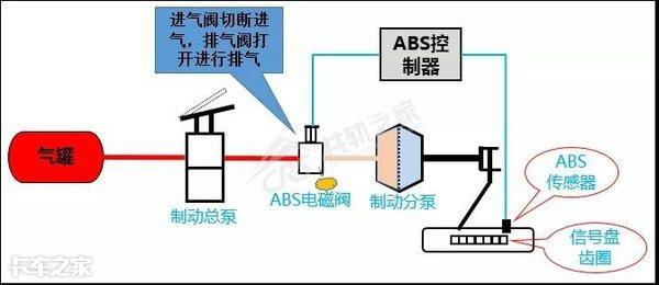 那电脑板怎么知道车轮快要抱死了呢?这都不是事、在轮毂处装个传感器测量车轮转速,当车轮转速快为0时(抱死),电脑板控制ABS电磁阀工作对制动分泵进行气压调整。