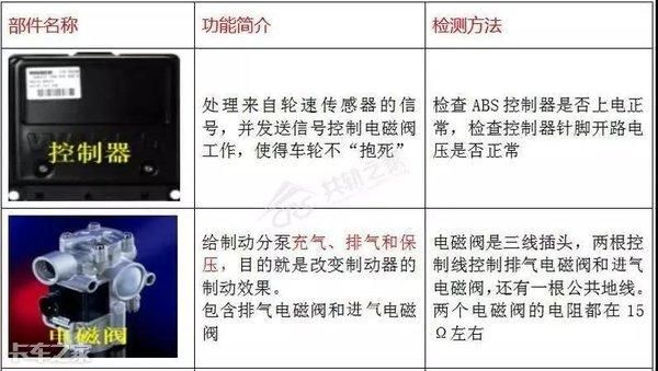 ABS系统部件功能和检测方法