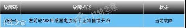 第二天司机又把车子开过来了,说ABS故障灯又亮了。难道昨天没有修好吗?又用解码器读了一下故障码,这次的故障不再是左前轮了,变成了“左后轮ABS传感器电流低于正常值或开路”;难道ABS传感器故障还会“传染”?