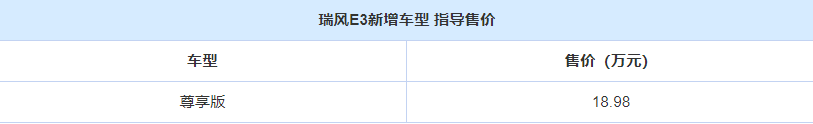 最后,也是大家比较关心的动力核心了。通过了解我们得知,瑞风E3新增车型所搭载的这台永磁同步电机,不仅可以爆发出150千瓦的最大功率,同时在续航里程上也没有让大家失望,CLTC标准下续航里程能够达到415公里,在市内跑货完全不是问题,加上18.98万的售价,你会喜欢吗?