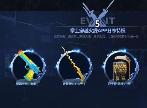 掌上穿越火线APP分享特权,活动期间,通过掌上穿越火线分享活动就可以领取特权礼包。