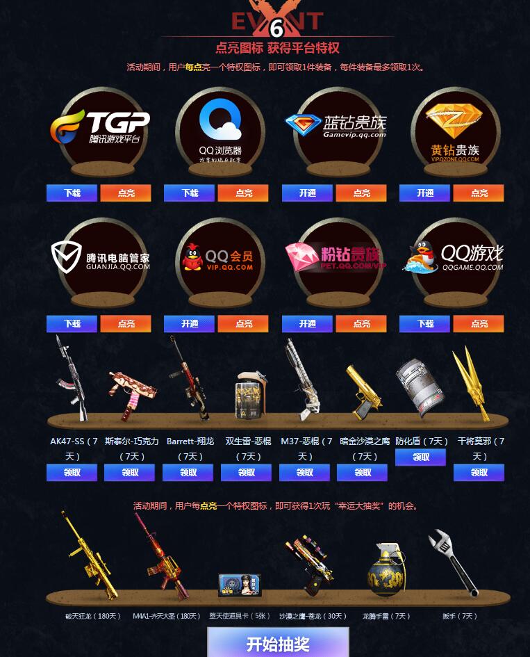 点亮图标,获得平台特权。活动期间,每点亮一个特权图标,就可以领取一件装备,每件装备最多可以领取一次。