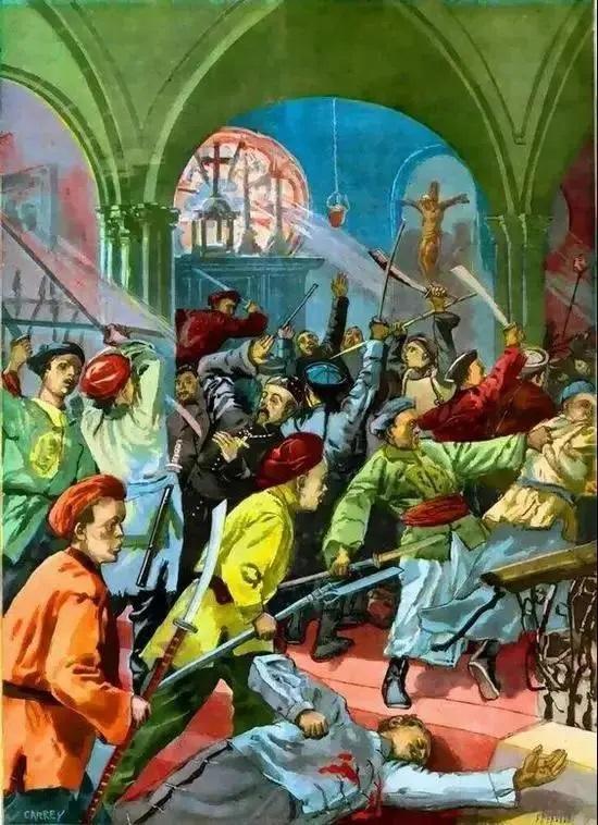译文:这就是民间散勇焚毁教堂、屠杀教民的事情发生的缘由。