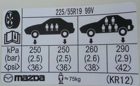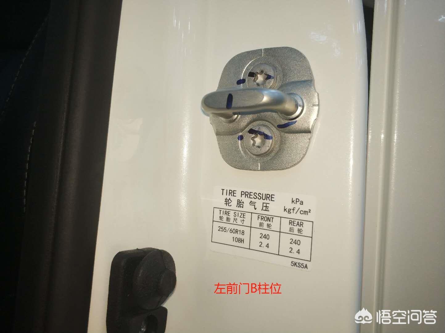 气压标牌一般在左侧B柱上,打开左前门上车的时候可以看到的。