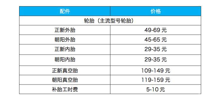 配件报价表(轮胎价格表:换配件需要花费多少钱)
