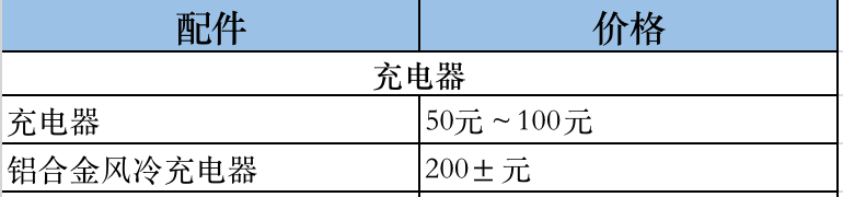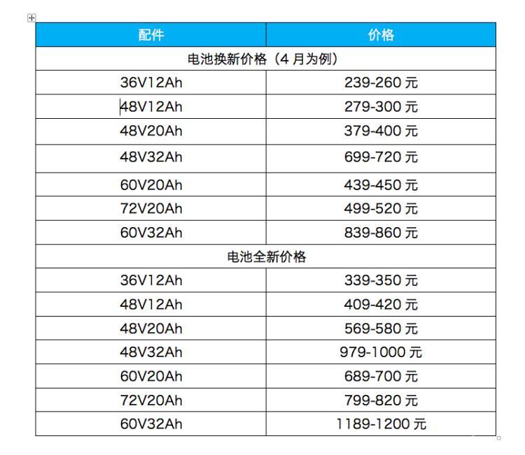 电池价格由于地区、类型、容量价格略有不同,价格表如下图: