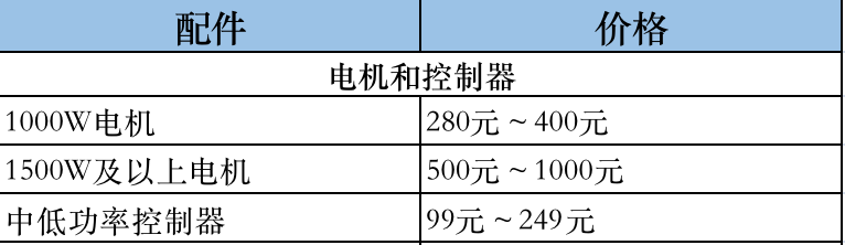 电机和控制器由于功率、尺寸大小不同,价格有差异,价格表如下图: