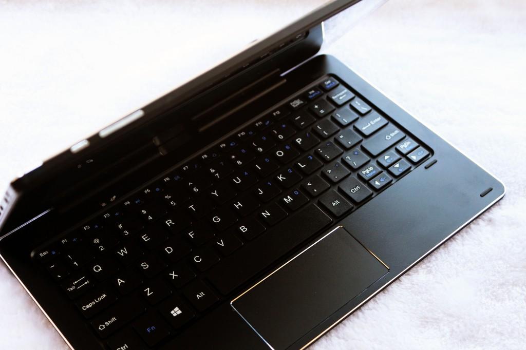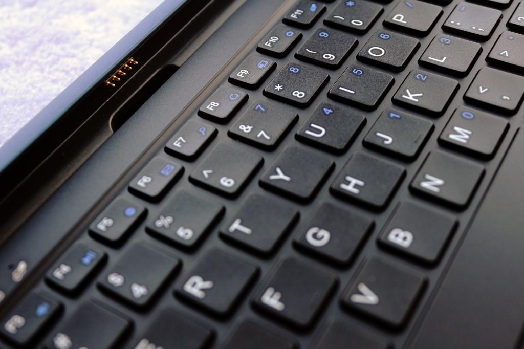 键盘的键程比较适中,按动的时候略微有一点软,敲击时没有什么声音,对于学生用户来说,即便是晚上舍友睡着了以后使用键盘也不会有什么噪音。在触摸板下方设计了隐藏式的左右按键,实际操作起来与笔记本键盘是一致的,只不过键盘排列更加紧致了一些,对于男生来说键盘的左右宽度比较紧凑,对于女生来说正好。