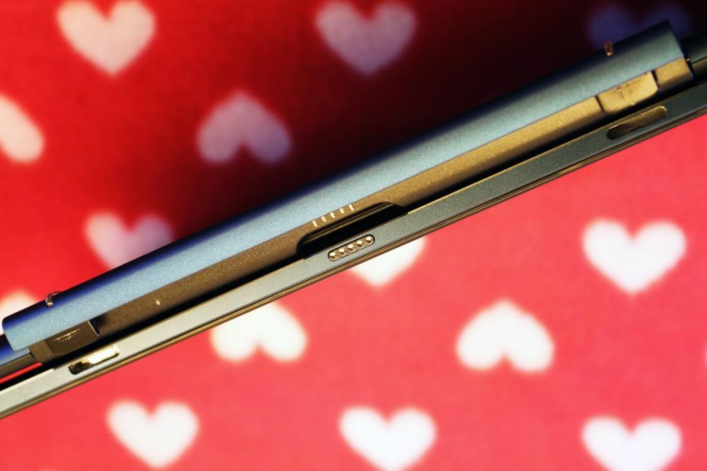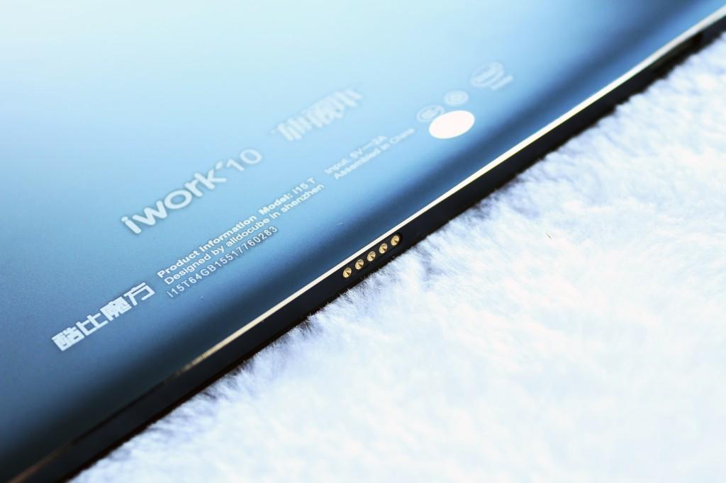 与大多数的windows平板相同,在iwork10旗舰本的下方设计有磁吸接口,通过该接口可与专用键盘进行磁吸附连接。