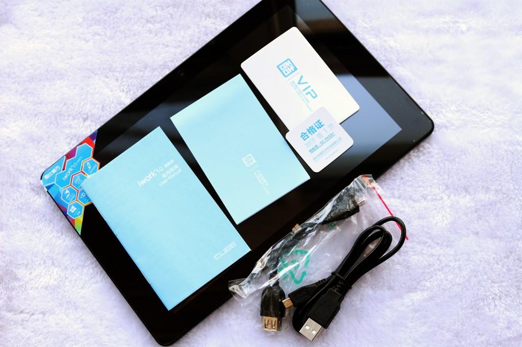 平板包装内除了有主机之外还赠送了一条micro USB的数据线,另外还有保修卡、使用指南、会员卡、合格证等纸片说明。iwork10旗舰本设计有USB3.0接口,不过USB3.0的传输线需要用户另行购买,假如能随机配备一条就更好了。