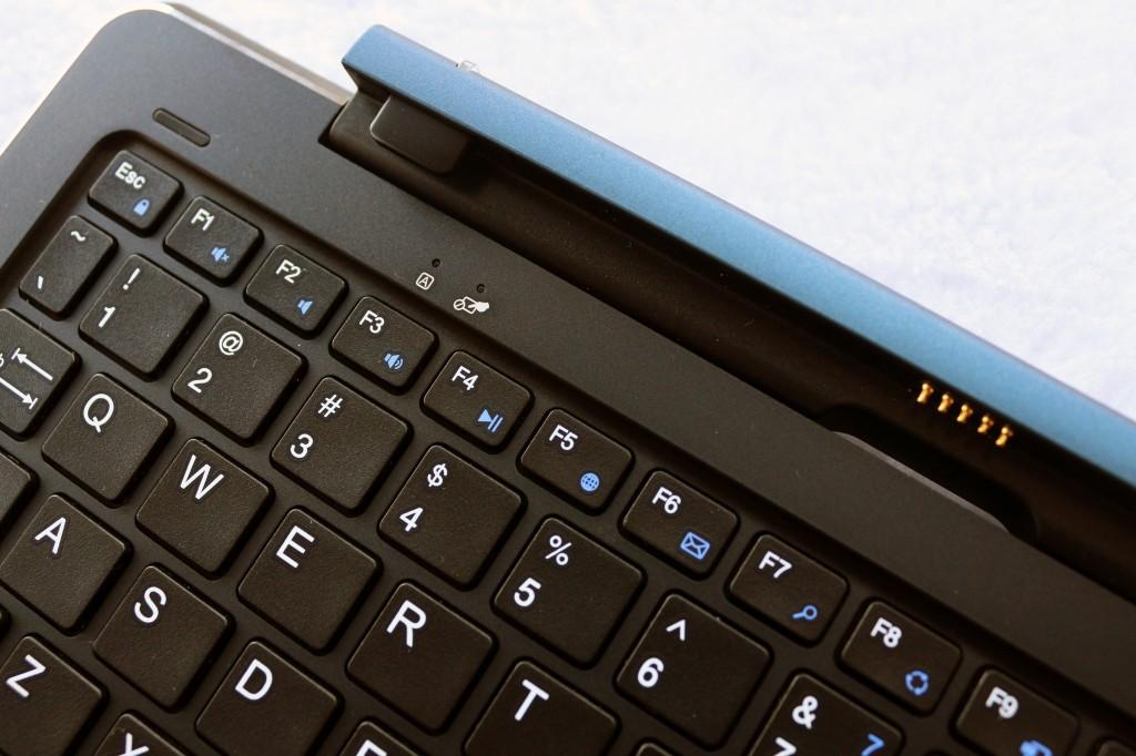 键盘上转轴的阻尼力度挺不错,甚至比笔记本的阻尼力度都略大了一些,不用担心在使用时平板会突然掉下来。