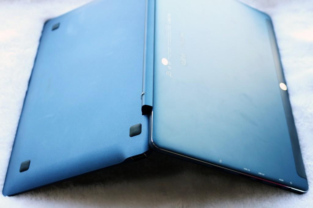 即便是与键盘搭配在一起,整体厚度的控制依旧不错,还是带有着一丝超薄笔记本的影子,不过重量会感觉略微重一点,单手拿略微吃力点。