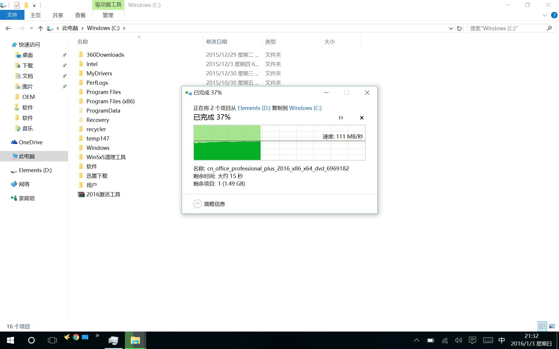 iwork10旗舰本在出厂时预置的是64位正版windows10家庭版系统,个人假如有所需要的话可以通过自行升级到windows专业版,不过个人觉得对于平板来说家庭版已经足够使用了。初次进入系统后有44.4G的可用空间,后续在安装了一些必备软件以及office2016后大约还有34G左右的剩余空间,因此即便是不另外配TF卡,iwork10旗舰本也是足够用户使用了。