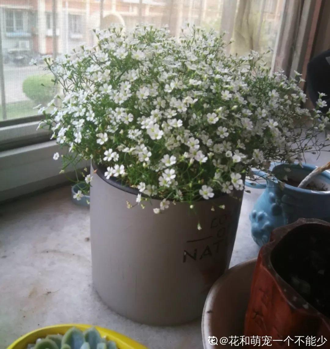 满天星喜光,要勤晒太阳,15cm口径的花盆栽种一棵,植株长大后勤打顶,哪怕出现花苞也要继续打,直到长成大花球。