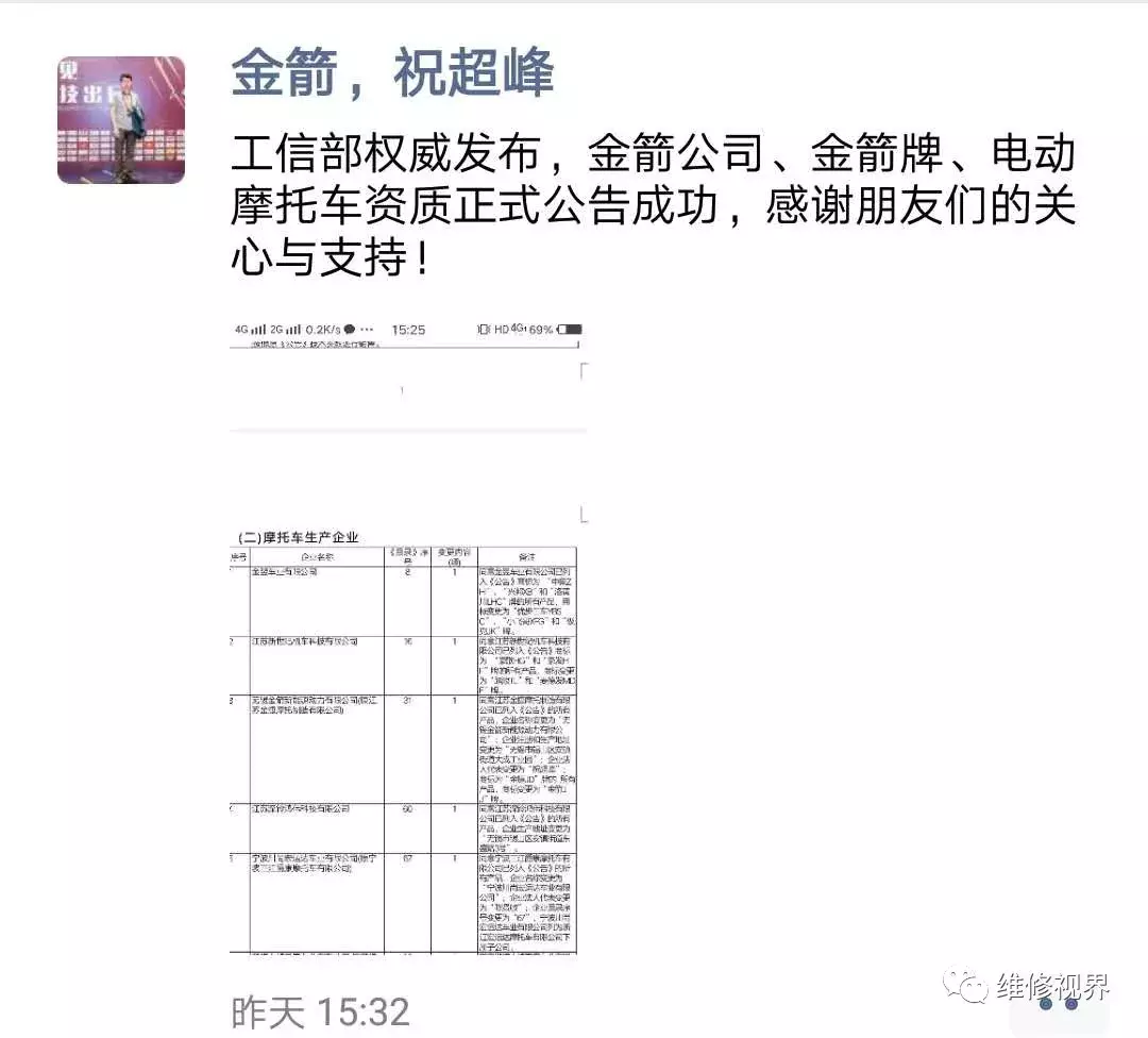 昨天,金箭电动车公司董事长祝超峰非常罕见地在朋友圈发布了一条消息,引起电动车行业的强烈关注: 工信部权威发布,金箭公司、金箭牌、电动摩托车资质正式公告成功,谢谢朋友们的关心与支持。