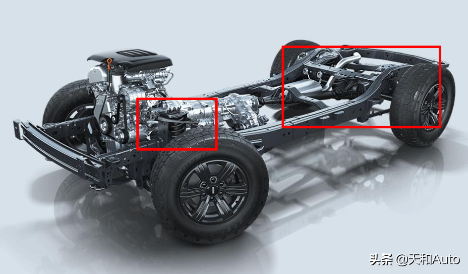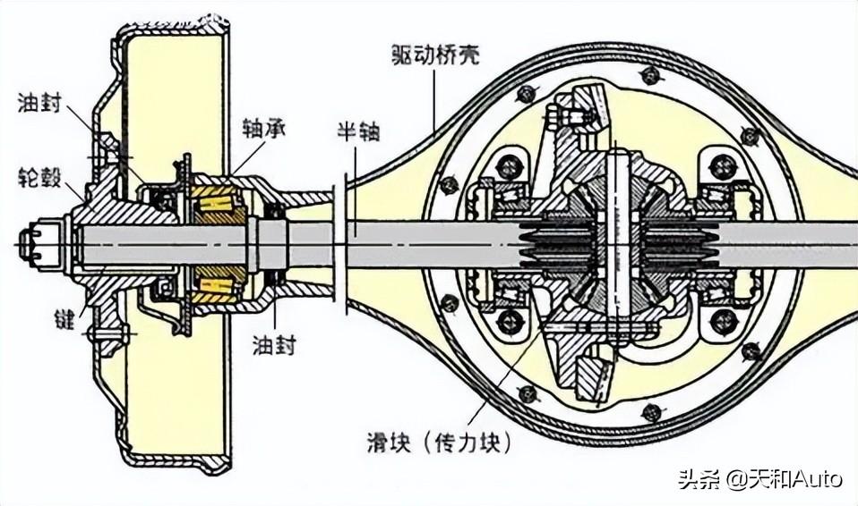 参考下图,整体桥就是一组带有差速器的传动桥。