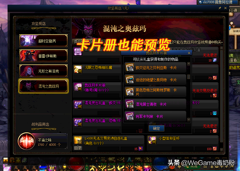 你以为这就结束了?就连随机礼盒也可预览! 比如“攻坚商店”兑换的希洛克、奥兹玛卡片册,“Alt+左键”就知道能开到哪些卡片了。