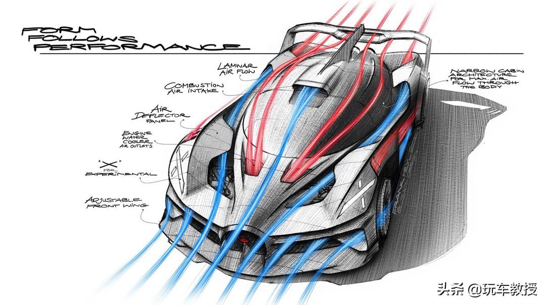 车尾部分,Bolide最大的特点在于使用X型尾灯的设计,极具未来感,这也是预告图中的标志性元素。同时,尾部还有一个尺寸巨大的扰流板,在320km/h时车尾的下压力高达1800kg,车头下压力达到800kg,将车辆牢牢地压在地面,保证车辆高速行驶时的稳定性。