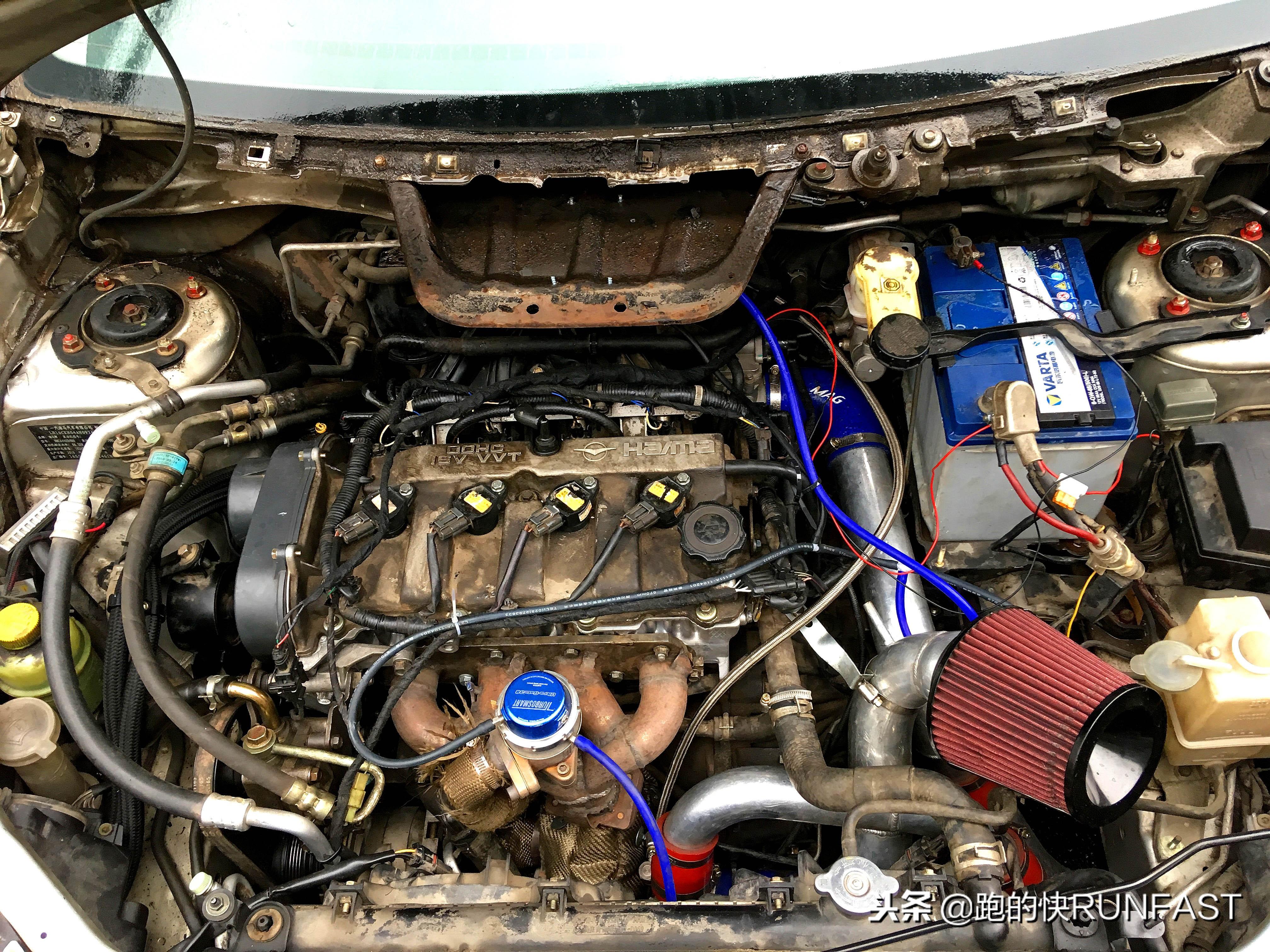 掀开机盖颜色明亮的“冬菇头”“进气肠”是全舱最大的亮点,你说这样对这台原厂122匹马力的1.6升自然吸气的发动机有多大的提升呢?Emmmm.......可能最大的提升不是在动力上,而是在驾驶者的内心。颜色加持的机舱让你信心满满,而尾部拳头大的单边双出排气筒则能让你所到之处皆是人们关注的焦点。