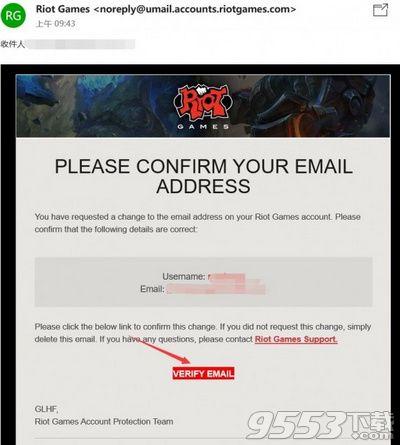 5.然后拳头公司会下发一个验证邮箱的邮件,如果找不到的话,可能会在你的垃圾箱里面~