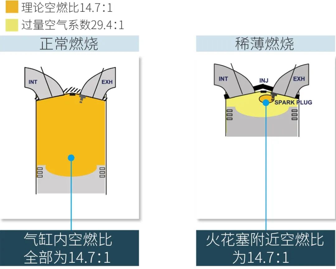 从热力学的角度来说,稀薄燃烧可以降低燃烧温度和泵气阻力,进而提高发动机的热效率。但众所周知的是,如果缸内空气的含量比标准值高太多,那就会出现混合气体无法被火花塞点燃的情况。可斯巴鲁偏偏不信邪,直接将空气的含量增加了近1倍,使这台1.8T发动机的空燃比达到了正常情况根本不可能被点燃的29.4:1......那斯巴鲁究竟施了哪些魔法,才使这台1.8T发动机在超高空燃比的情况下能被正常点燃呢?