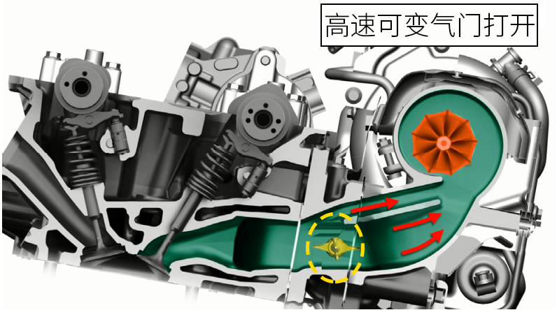 那这台发动机的“一流”究竟体现在哪里呢?想必各位车迷都听说过保时捷的VTG可变截面涡轮,它通过调节涡轮截面角度的变化,使涡轮在高/低转速下都能具备良好的增压性能和响应速度。可除了保时捷以外,就很少有普通家用车使用VTG技术了,这是因为汽油发动机排气温度高达1000℃,VTG为了承受住超高的温度,就必须要采用昂贵的耐高温材料,这无疑会大幅增加发动机的制造成本。