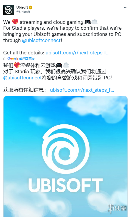 2023年1月18日谷歌云游戏平台 Stadia 将彻底关闭,育碧今日确认,在 Stadia 购买了育碧游戏的用户,育碧将免费提供这些游戏PC版本,这些游戏将通过Ubisoft Connect 自动添加到用户的游戏库中。支持云交叉保存的游戏,其游戏数据也会保留,但无法将虚拟货币从Stadia转移到 PC,育碧提醒用户,为避免丢失请在Stadia关闭服务之前使用虚拟货币。