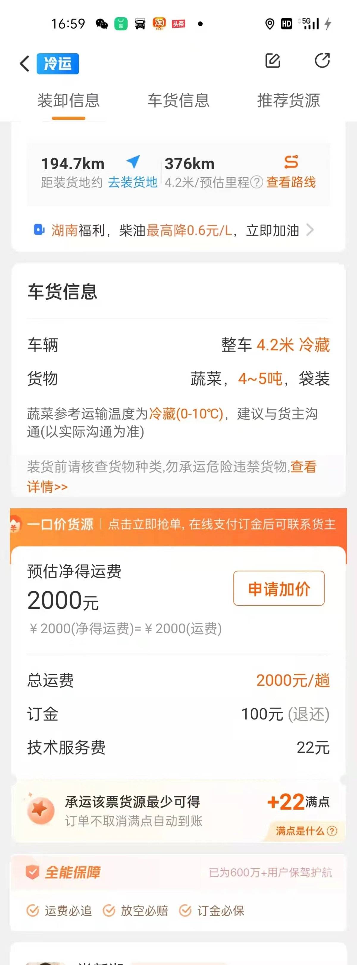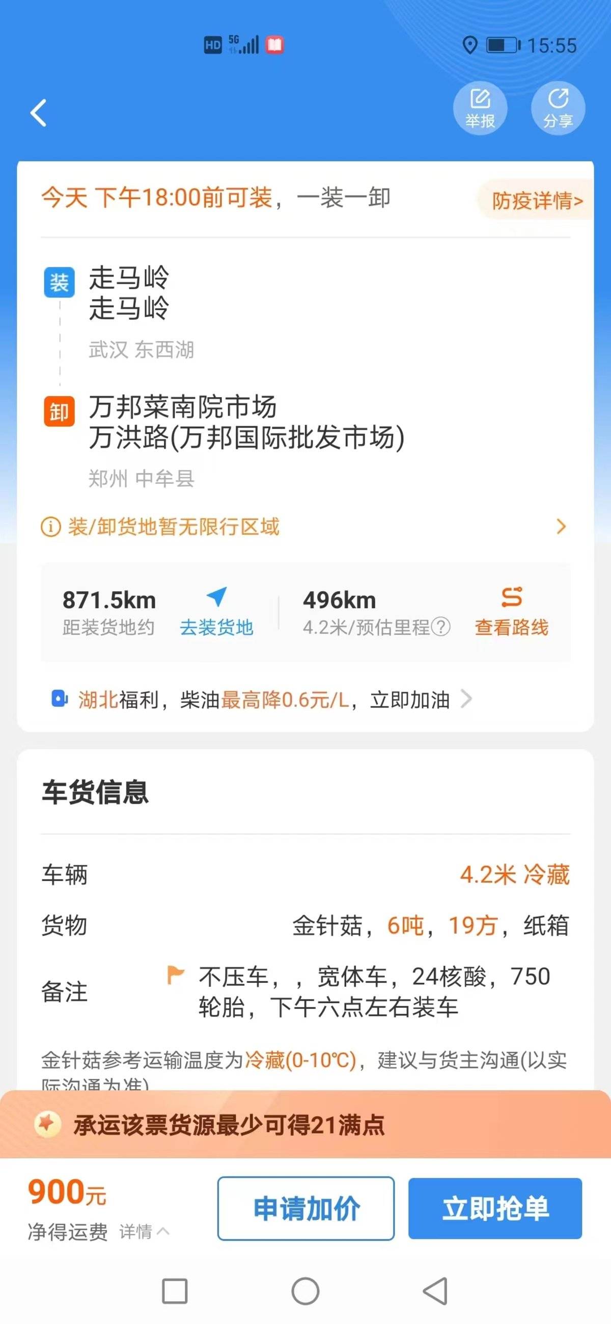以上图为例,发货方明确要求自己需要4米2冷藏蓝牌轻卡车型,有19个方的金针菇需要运输,并且配备了纸箱,这样的方量一般合规的4米2冷藏蓝牌轻卡也可以运输。而货主在备注之中详细标明了需要装配750轮胎的宽体车,就是我们口中常说的老法规车型,由于目前国家并没有对蓝牌在用车下发全新法规和限制,所以也算是正常现象。