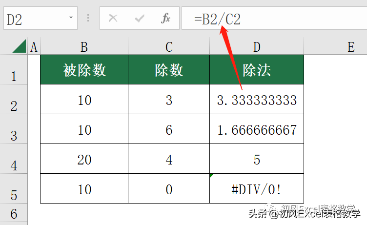 如果分母是0,结果是错误值#DIV/0!。