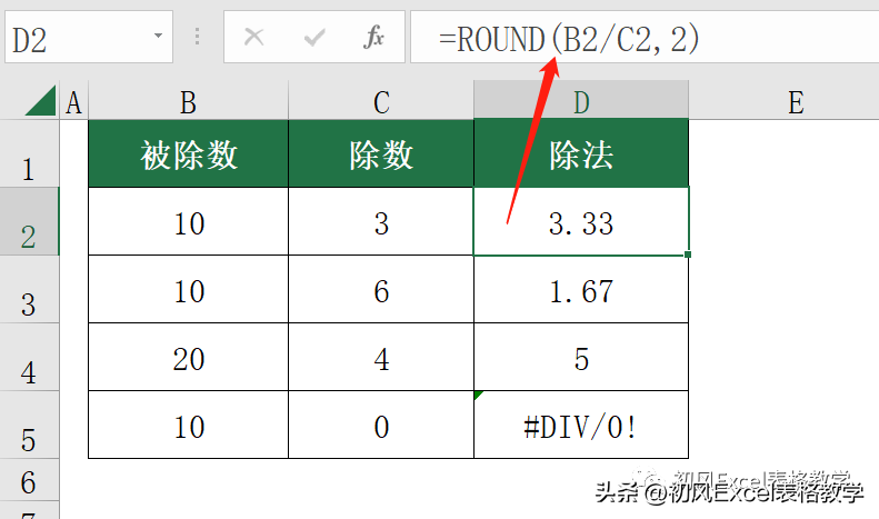 表示B2/C2的结果保留两位小数。