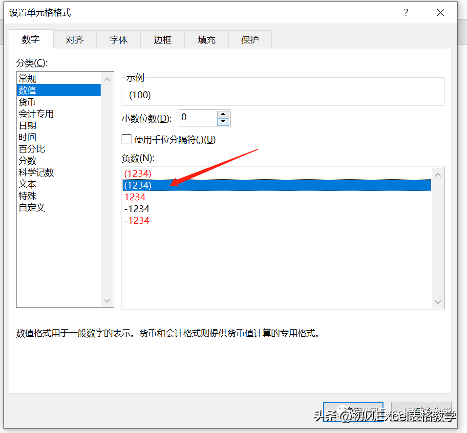 如下图所示,负值不显示负号,而是在两边添加括号。
