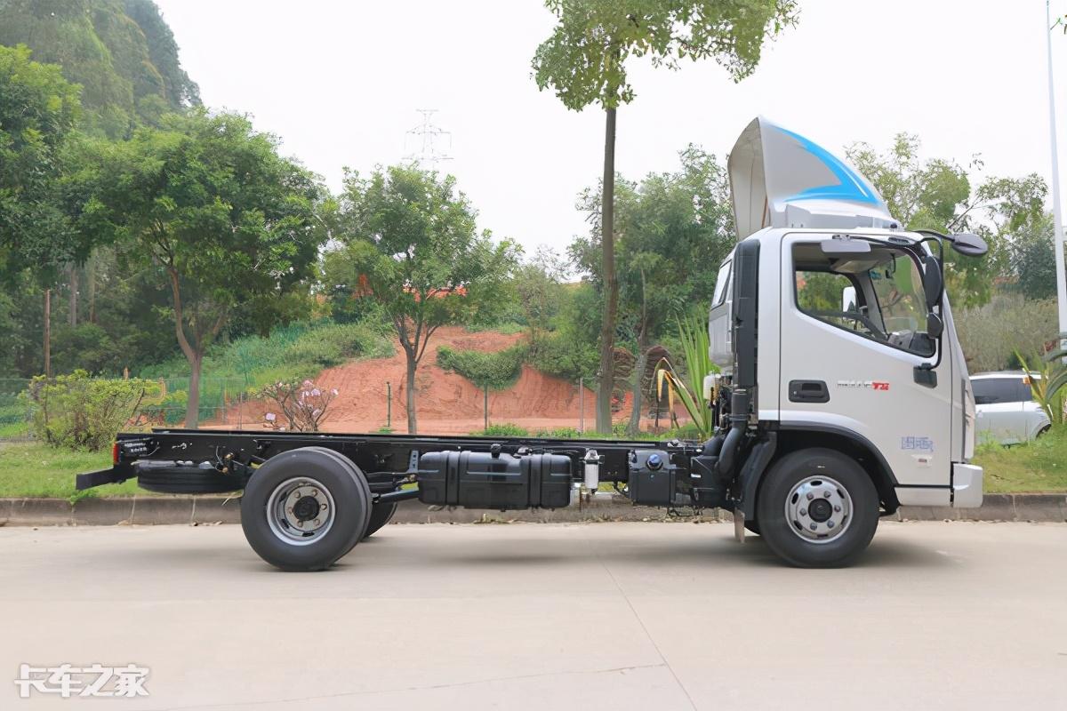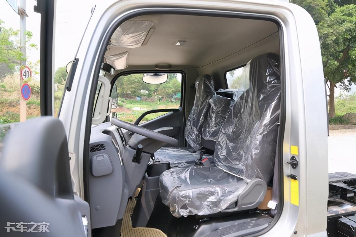 这款车搭载的是福田康明斯ISF2.8s5直列四缸发动机,最大输出功率110kW(148马力),在扭矩转速在1500-2900RPM时,可爆发峰值扭矩360N.m,符合国五排放标准。这款发动机的口碑在卡友圈中一直都非常不错,最大输出150马力跑城际城运也是绰绰有余了。