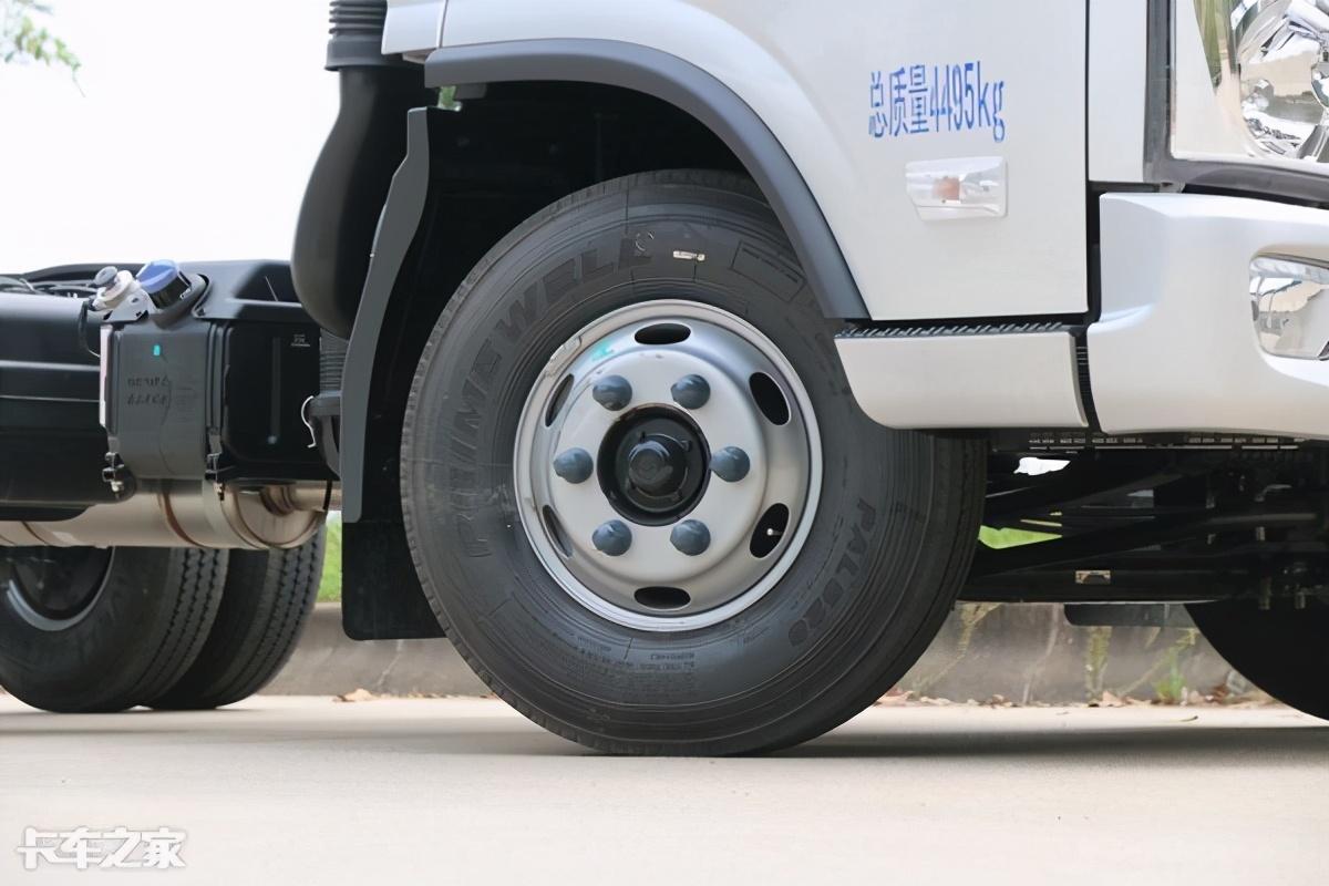 实拍车装配的轮胎来自佳通轮胎旗下的佳安轮胎品牌,规格为7.50R16LT 。佳安轮胎具有耐磨、舒适和抗暴性等特点,性价比高,在同级车型有一定优势。