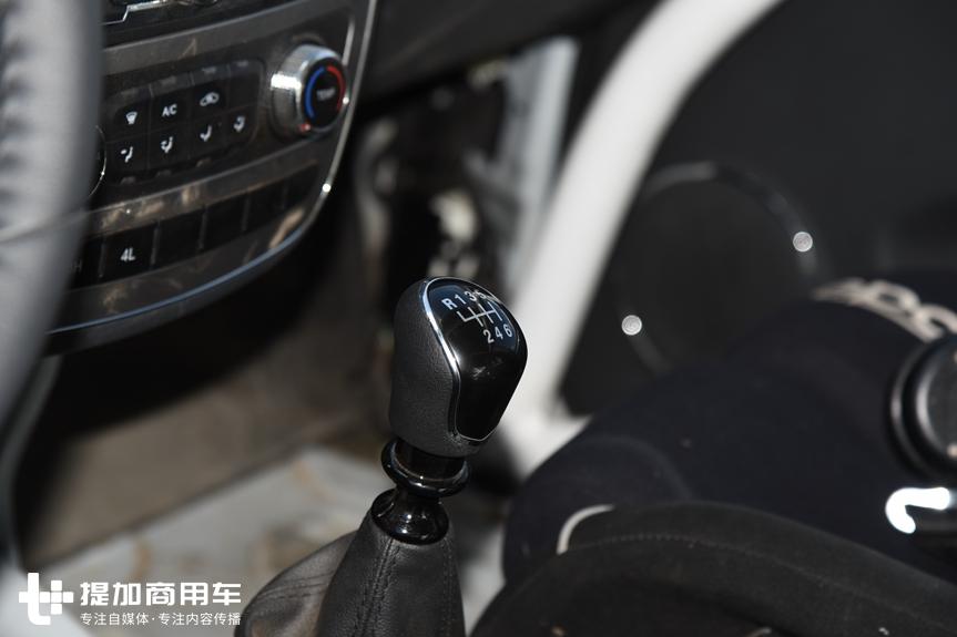 变速器采用6档手动档,众所周知,赛车一般都会采用手动变速器,而手动档的优点在于变速器能更好的传递发动机所带来的动力输出,尤其是在陷车或需要更大扭矩时,手动挡可以更好地胜任,并且手动档能更加贴合赛手的驾驶习惯,方便赛手在不同路段选择相对应档位。帅铃T6驱动模式为四驱模式,可切换高速四驱和低速四驱两种模式,高速四驱用于高速过弯或冲破时使用,低速四驱模式用于脱困或涉水时使用。