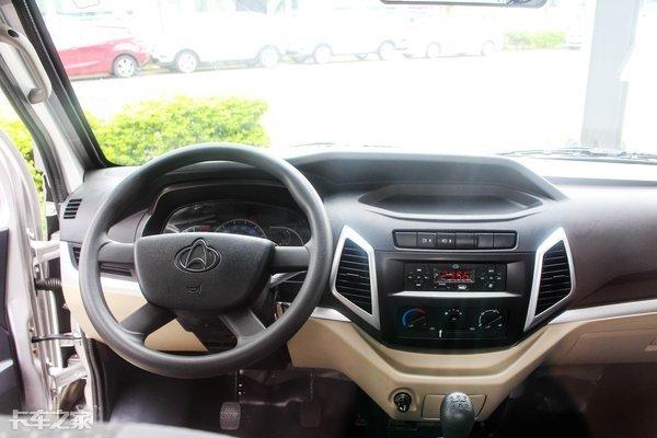 驾驶室内部设计更像是目前流行的面包车,米色和灰色为主色调,银色饰条加以点缀,不容易产生审美疲劳。配置方面和同级车型差异不大,收音机和空调功能均未缺席,不过大灯配备透镜,视觉效果相比同级车型有一定优势。