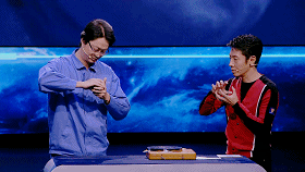 在节目中,“检验”这双手的是一次500公斤级的“较劲”。这里涉及到一个知识点。大家知道,我们所熟悉的平面只是肉眼看上去平,其实在微观层面,原子的起伏还是有的。加上空气和杂质,两个看起来平的东西无法自动贴合在一起。而当两个金属层表面达到微观层面的近乎于平,高低起伏在几十纳米甚至几纳米时,它们之间会失去所吸附的空气,接触面的原子就会开始扩散,两块金属的原子慢慢融合在一起,就会相互“抓住”对方形成一个整体,很不容易分开。