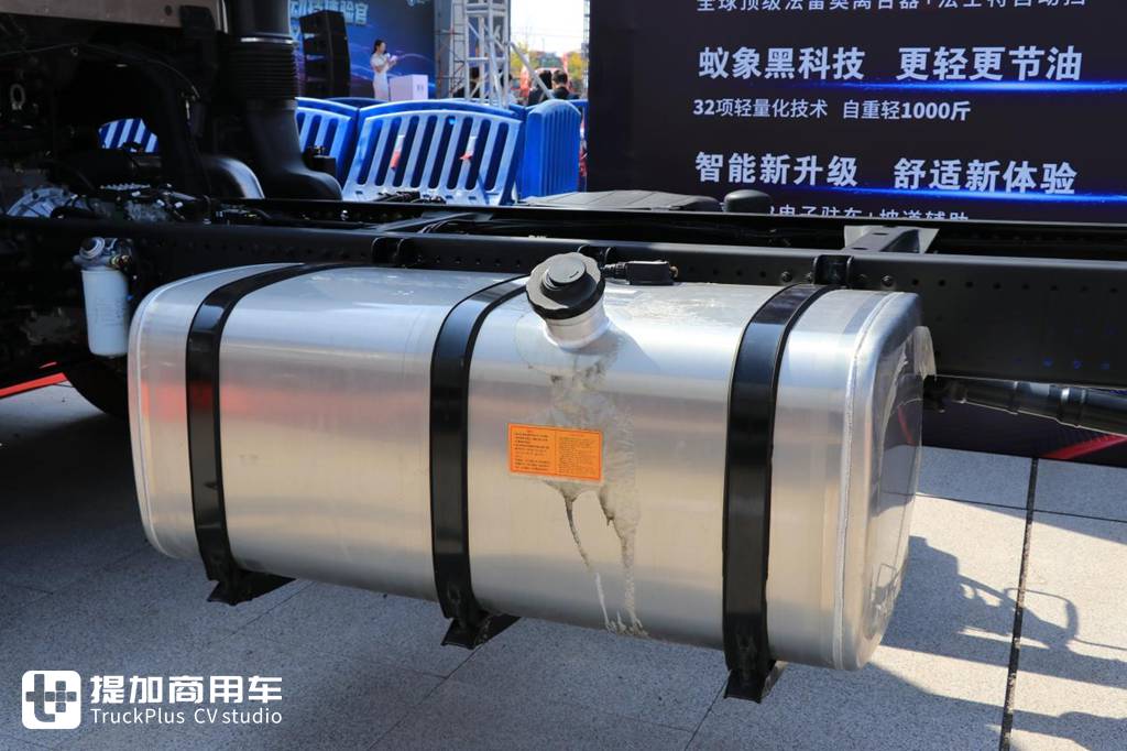 除了我们能看到的动力链,奥铃大黄蜂还在许多内在部分做了优化,例如全车储气筒、油箱均采用铝合金材质,轮胎为低滚阻特性,高强度轻量化钢材等等,整车自重降低1000kg。底盘由国际上首屈一指的麦格纳进行调校,滤震性、过弯操控、紧凑感等等均有明显提升。