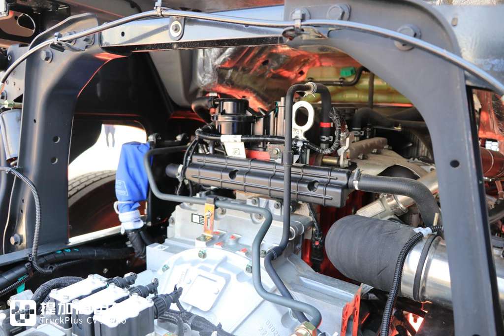 大黄蜂上使用的福田康明斯F4.5发动机型号为ISF4.5NS6B220,迎合现国六排放标准,最大220马力与820N.m的动力输出表现也能满足总重18吨的需求,而且大排量的直列四缸在标载的环境下会发挥出较好的燃油经济性。