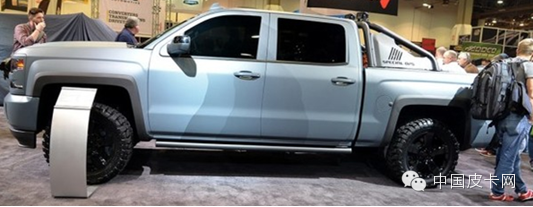 9、雪佛兰Silverado新概念车 2015 SEMA改装车展上,通用汽车带来了多款概念车型,其中包含两款皮卡概念车型,雪佛兰在本次车展中带来了Silverado Special Ops概念车,该款皮卡是基于雪佛兰Silverado 1500 Z71打造。本次发布的雪佛兰Silverado Special Ops概念车外观极具攻击性。Silverado Special Ops概念车的外观采用了十分个性的涂装,新车的前进气格栅造型有所变化,在格栅内部增加了LED灯组。此外,新车搭载了新的越野轮胎,在货厢中加入了黑色的防滚架,防滚架上方也安装有LED灯组。在车内,Silverado Special Ops概念车将会采用防水座套以及地垫,车内的扶手、仪表盘等也将会有细微的调整。动力方面,这款车搭载5.3升V8发动机,最大功率为360马力,峰值扭矩为519牛·米。据官方透露,该车的进气系统以及排气系统都将进行升级,相比于Silverado 1500 Z71将有所提升。