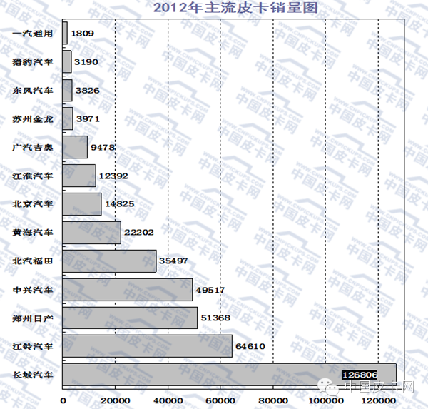 如果从2012年算起,国产十六家皮卡车企的市场竞争格局及主体市场占比,似乎没有发生重大的变化,但各品牌皮卡销量排序结构已经发生了根本性的变化,此消彼长的市场份额似乎每天都在发生着的变化,新杀入皮卡车领域的新皮卡品牌,已经成为传统皮卡车企的最大威胁,不仅产销量超过了前者,而且品牌市场影响力也超越了后者,最典型的新锐皮卡车企如江铃轻汽皮卡、江淮帅铃皮卡、江西五十铃D-MAX等。明年更引起业内关注和重视的是上汽商用车的大通皮卡车,这可能不仅是一匹行界“黑马”,极有可能是一条横空出世杀入皮卡市场的“北方的狼”,另外,性价比比较高的江西五十铃瑞迈皮卡将会是8-10万元区间最大的搅局者,必将抢占一定的份额。