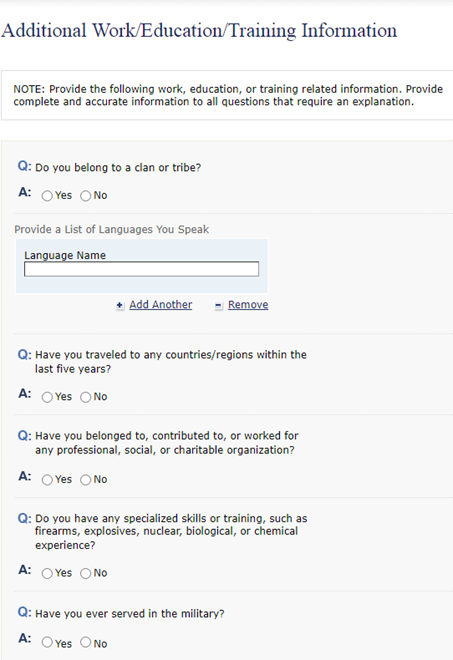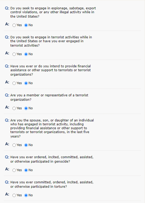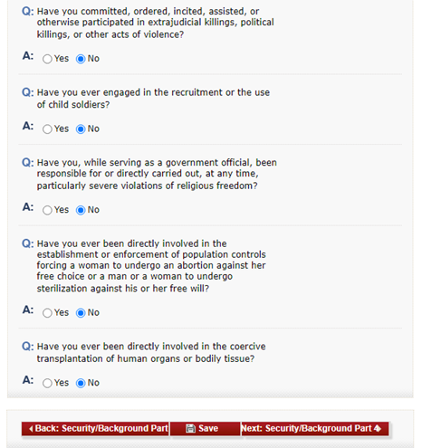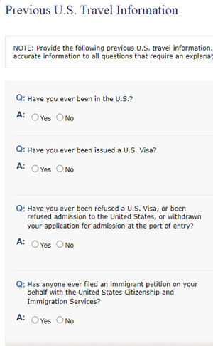 是否曾经被拒签或被美国海关或边检拒绝入境,撤销入境申请。选是的话需要解释。目前办的人里面没有这里选是的。