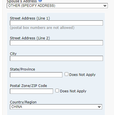 如果和配偶是分居状态,需要写配偶住址,如下图: